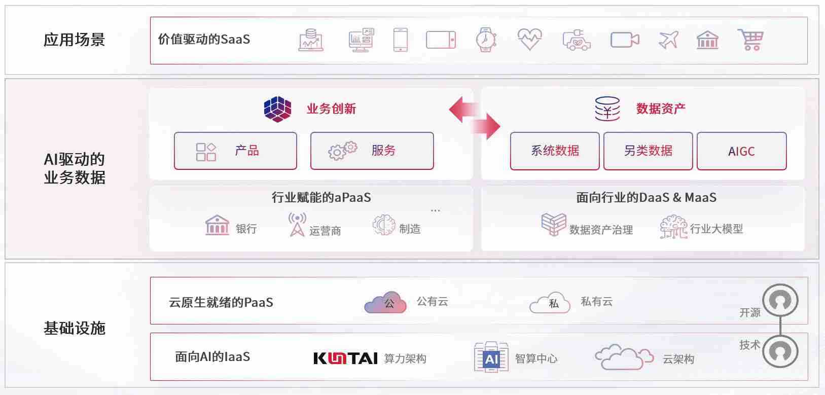 数字时代,,,围绕企业数字化转型的关键要素,,,J9.COM数码开创性的提出数云融合战略和技术体系框架,,,,着力在云原生、、数字原生、、、AI原生和信创产业上架构产品和服务能力,,,为处在不同数字化转型阶段的快消零售、、汽车、、、、金融、、、医疗、、、、政企、、、、教育、、、运营商等行业客户提供泛在的敏捷IT能力和融合的数据驱动能力,,构建跨界融合创新的数字业务场景和新业务模式,,,,助力企业级客户建立面向未来的核心能力和竞争优势,,全面推动社会的数字化、、、、智能化转型升级。。。。